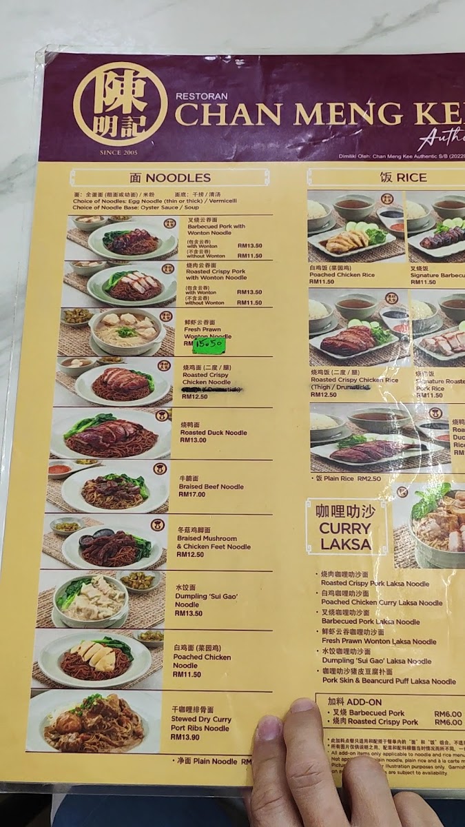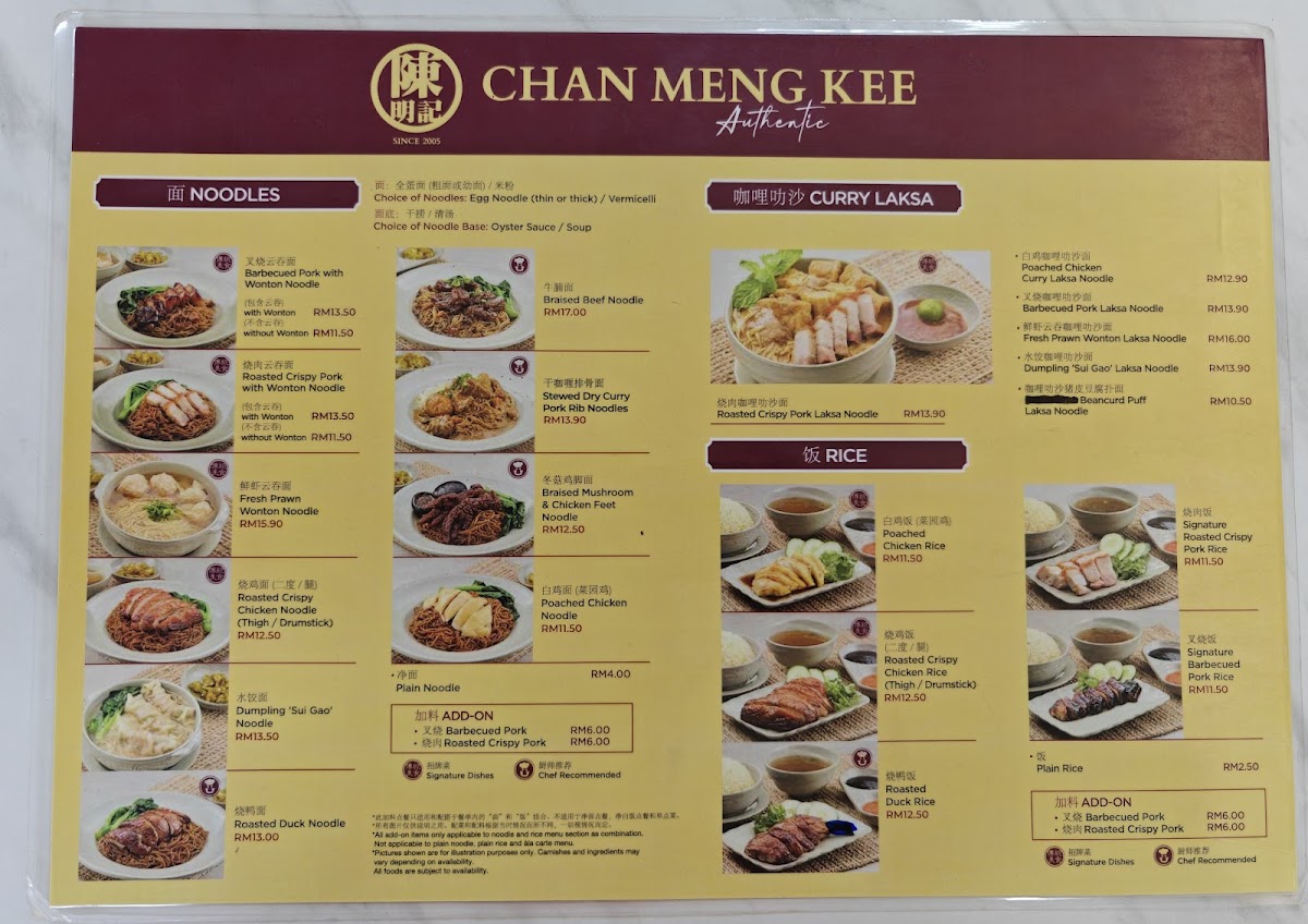 Authentic Chan Meng Kee Menu